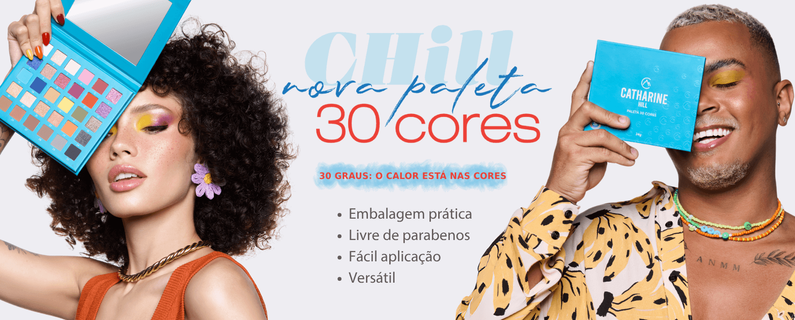 Com nova fórmula que garante sombras mais macias, pigmentadas, com fácil espalhabilidade e alta durabilidade, a paleta também está em um novo design, totalmente com a carinha da Catharine Hill, sem perder sua essência inicial. A nova embalagem cartonada é resistente, prática e evita sujeira. Agora com espelho incluso, ela é perfeita para levar na necessaire e usar em qualquer ocasião.
